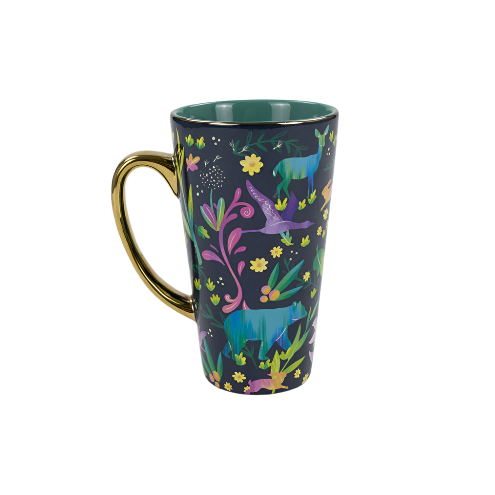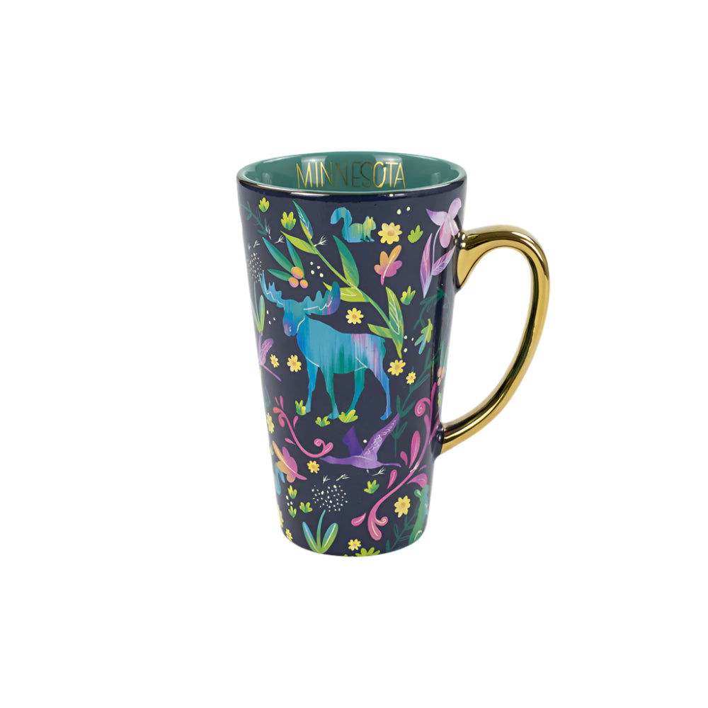Sip in style with the Minnesota Wilderness Chromatic Java Mug! This tall, vibrant mug captures the magic of Minnesota’s great outdoors with colorful moose, wildflowers, and plants dancing across its surface. The shiny gold handle adds a touch of glam, making every coffee break feel like a nature escape. Perfectly floral and fun, this mug lets you carry a bit of wilderness charm wherever you go—whether at home or on the move!