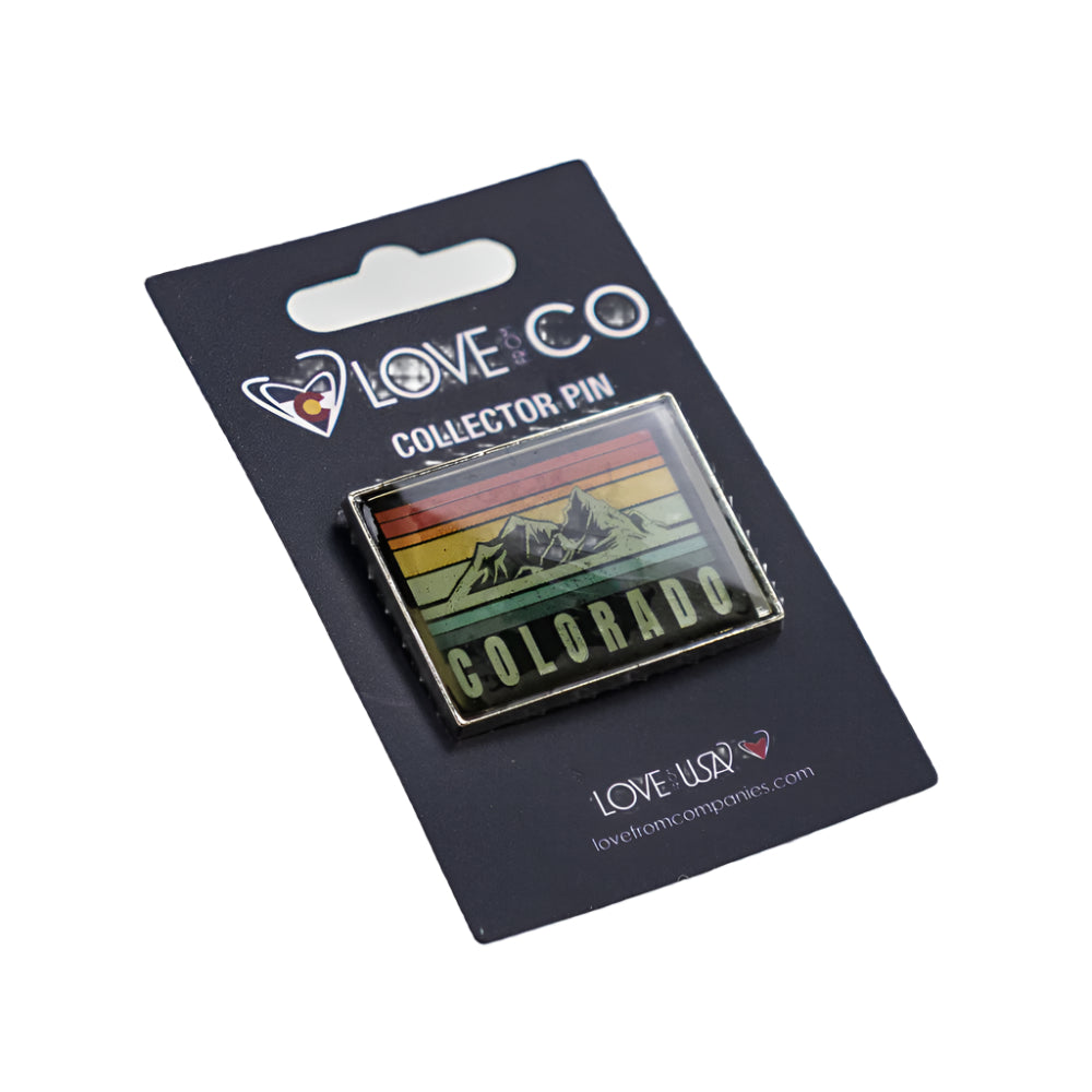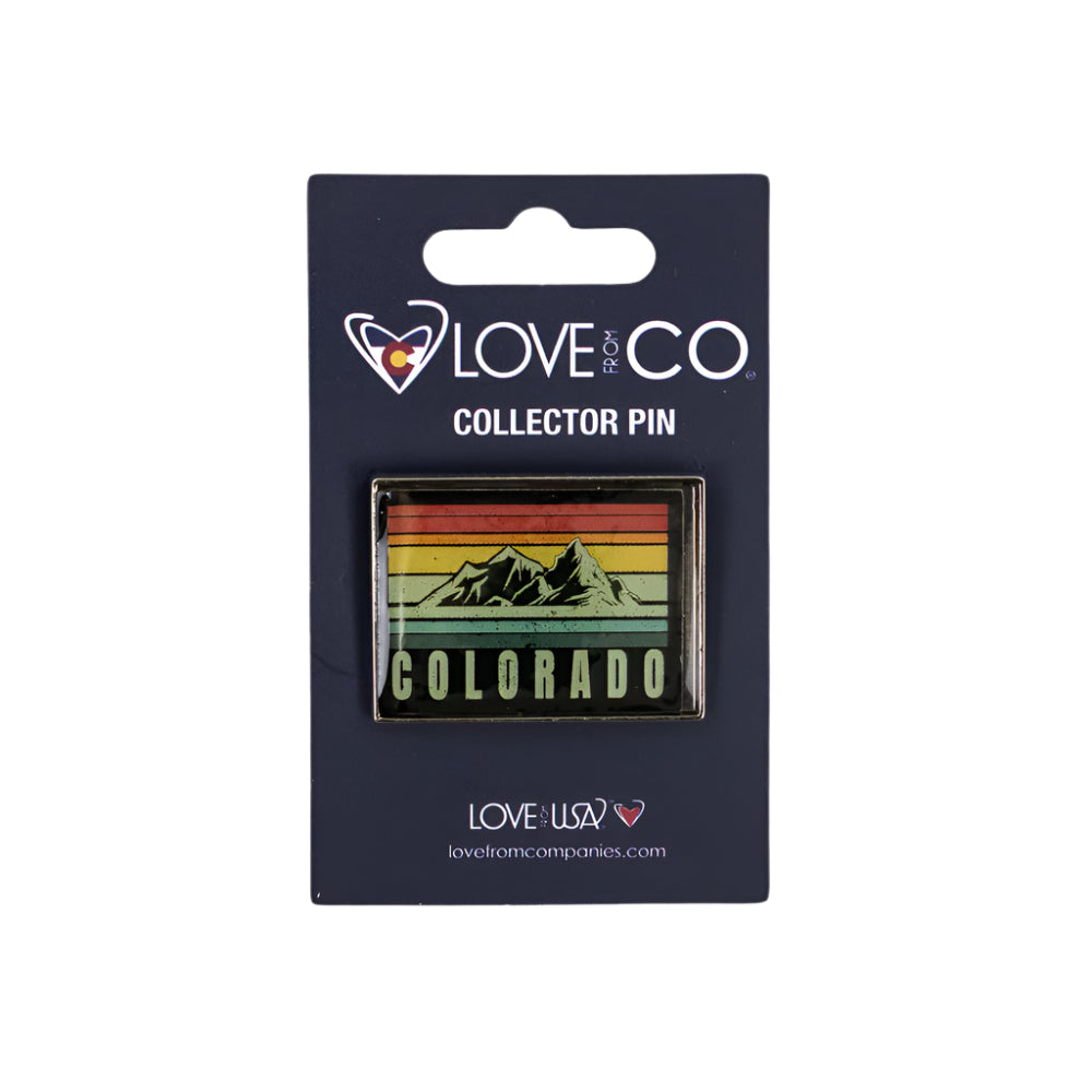 Add a splash of Colorado charm to your collection with the Colorado Striped Mountains Lapel Pin! This vibrant pin showcases majestic mountains and the word "COLORADO" against a lively striped backdrop in multiple colors. Perfect for proud locals and visitors alike, it’s a playful keepsake to celebrate your love for the Centennial State. Pin it on and let your adventurous spirit shine wherever you go!