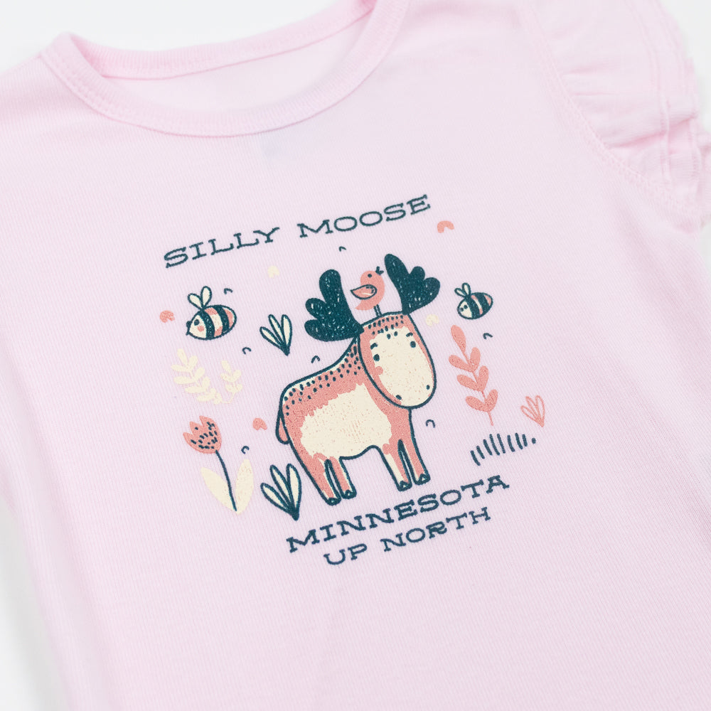 Made from soft, breathable fabric, the Minnesota Silly Moose T-Shirt is designed with comfort and adventure in mind. The soft pink color adds a cheerful pop to any outfit, while the relaxed fit keeps kids comfy on all their silly escapades. Whether your little one is exploring the great outdoors or just hanging out at home, this shirt brings the charm of the Northwoods with a splash of humor.