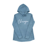 Designed with a modern, feminine touch, the flowing Chicago script across the chest is understated yet stylish—an easy way to show your city pride without shouting it. Available in soothing Slate Blue and soft Pearl, it’s the kind of piece you’ll reach for again and again, all year long.