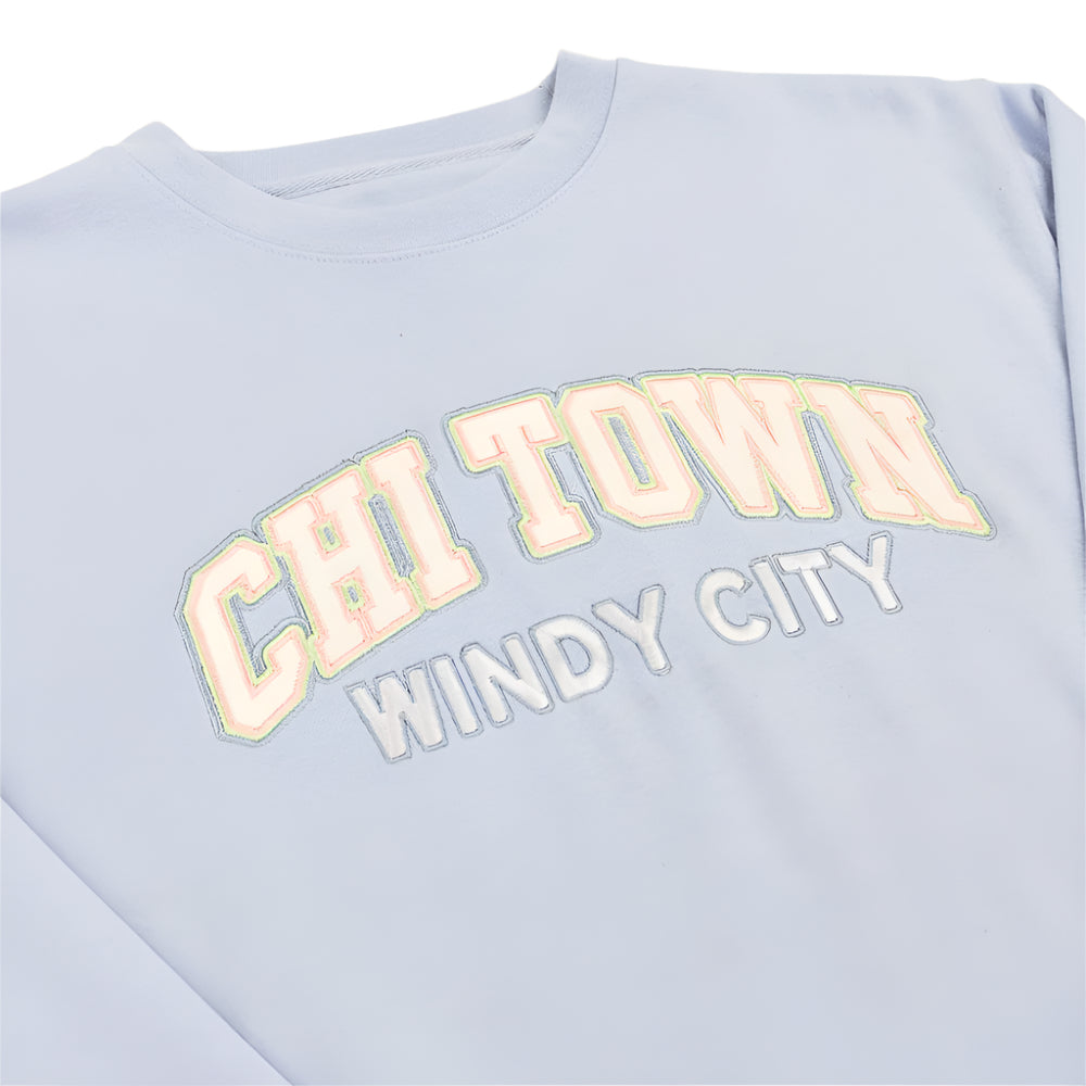 This sweatshirt brings serious 90’s throwback energy with a clean, collegiate twist. Featuring bold, arched “CHI TOWN” lettering and a crisp “WINDY CITY” underneath, it’s the kind of classic design that feels right at home on the quad, at the lake, or anywhere in between.