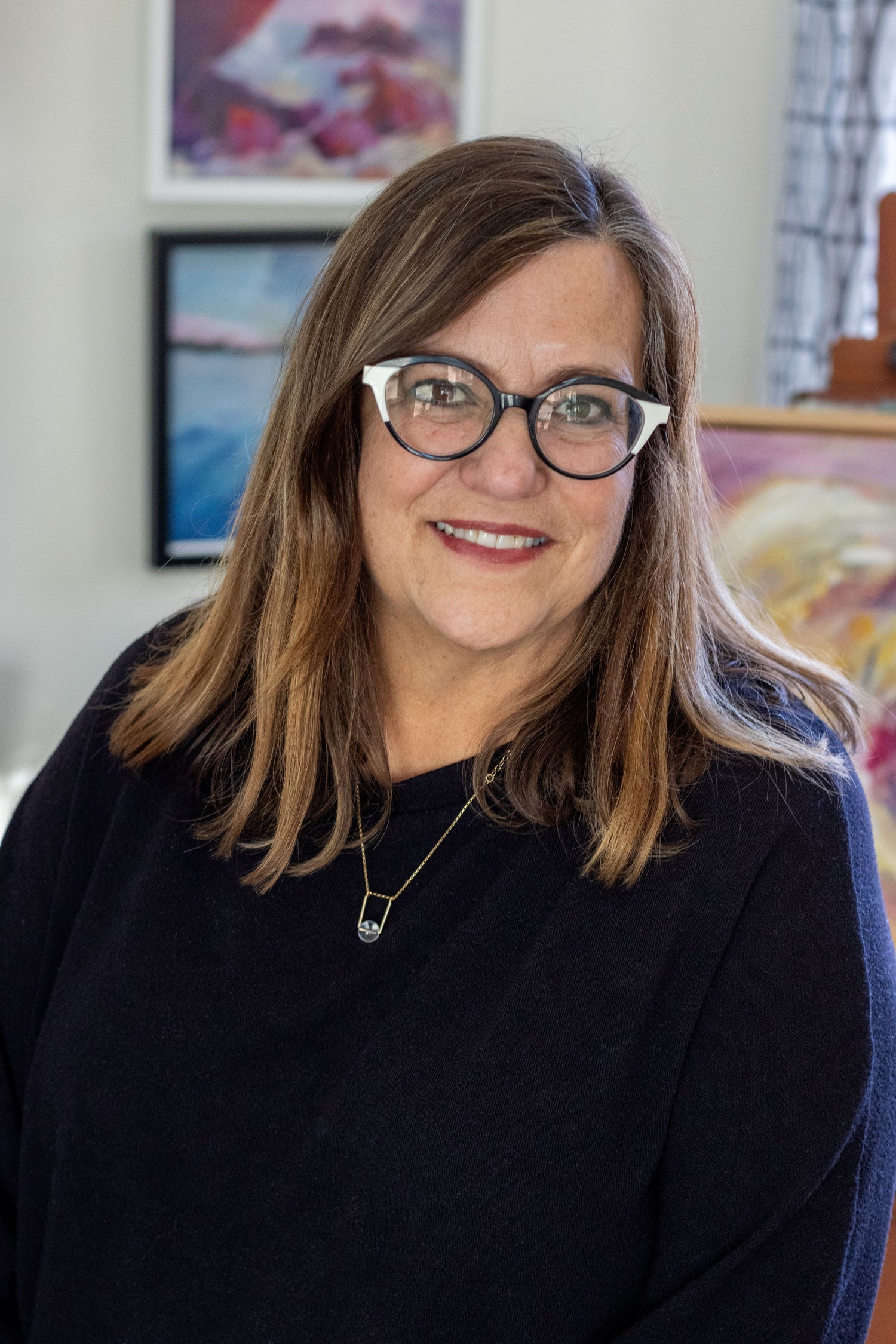Lisa began painting during Covid as a creative outlet and has found joy in this pastime ever since. Inspired by her travels, Lisa creates modern, contemporary paintings. Many of Lisa's designs incorporate her cancer radiation mask into her artwork, using it to add texture and tell a deeper story. This mask was worn daily for six weeks during radiation treatment, ensuring precise delivery of radiation treatment. By embedding this symbol in her work, Lisa raises awareness of rare cancers that are often overlooked and underfunded.