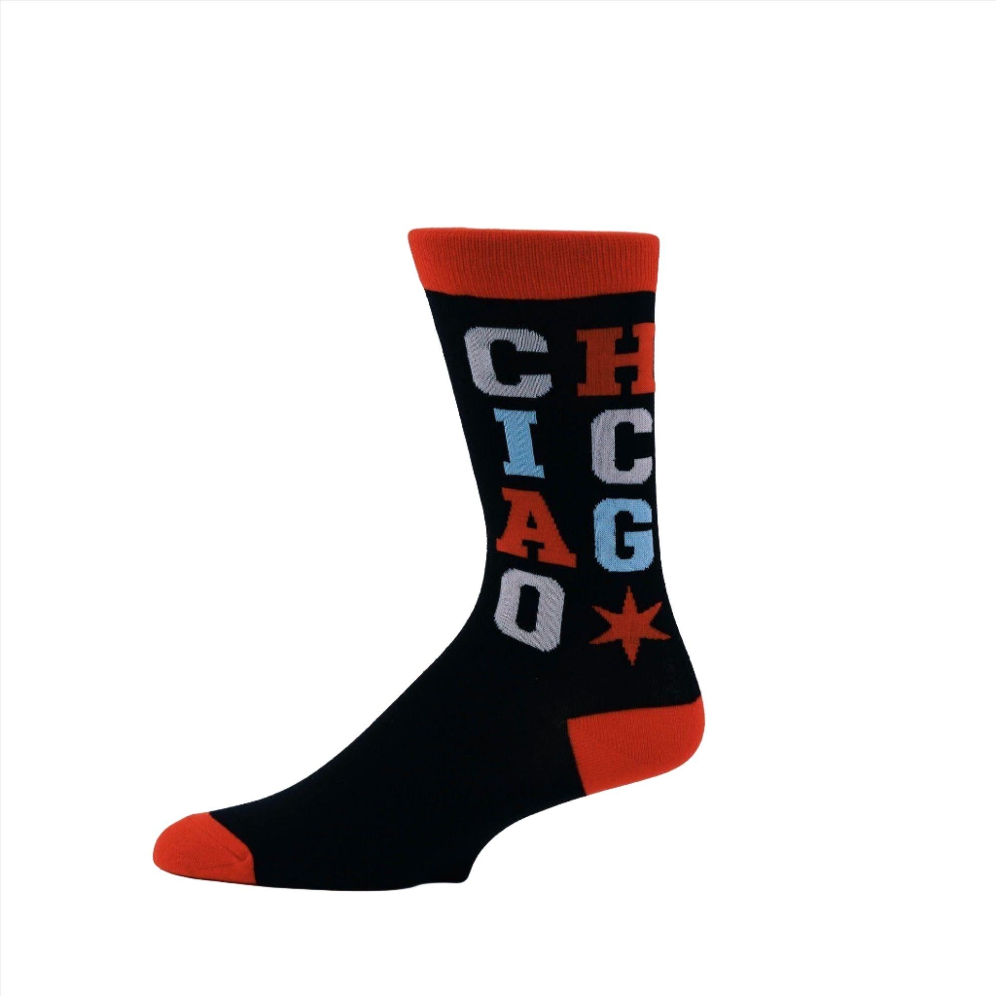 The Chicago Stacked Type Black Socks are a sleek and stylish accessory that showcases the iconic city's name in a stacked typography design. These socks feature a modern and minimalist look, with the word "Chicago" elegantly arranged in a stacked format, creating a sophisticated and eye-catching appearance.